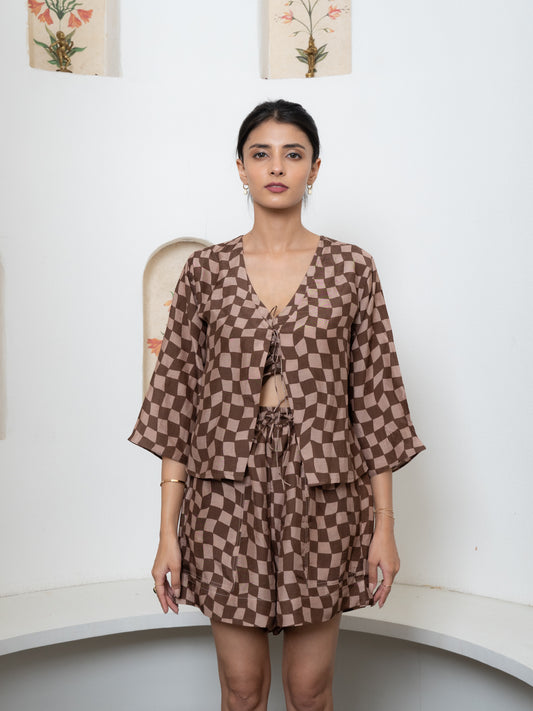 Brown Gingham Short Co-ords Set
