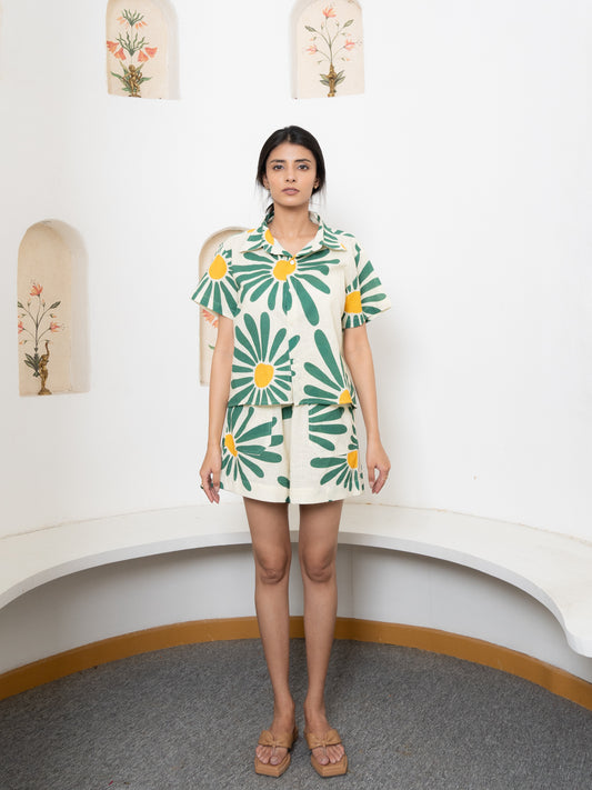Green Daisy Shirt shorts Co-ords Set
