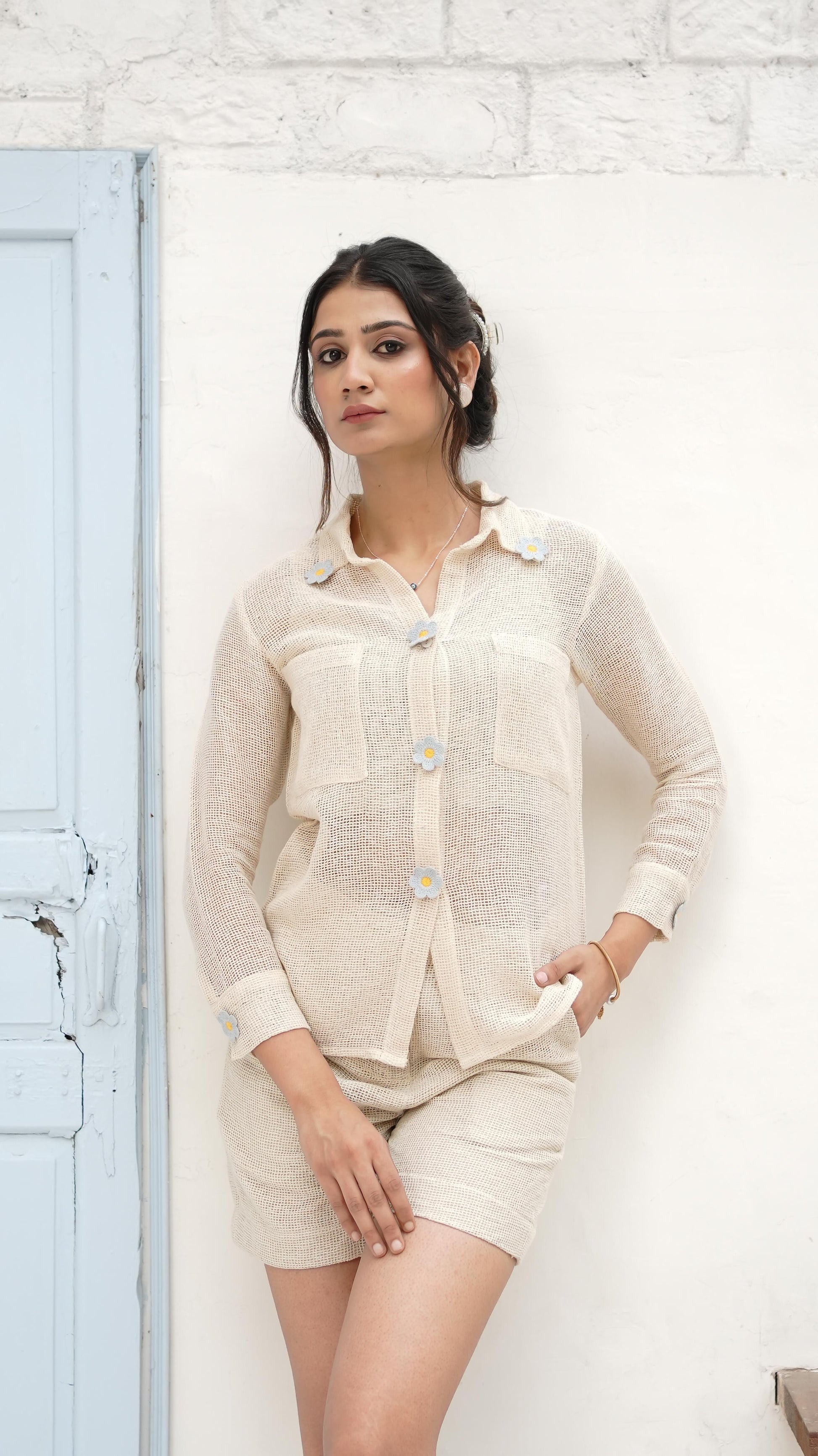 The Off-White Shirt Set brings effortless coordination to your everyday wardrobe. Made from soft, breathable cotton, this two-piece set includes a classic button-down shirt paired with relaxed bottoms—perfect for work-from-home days, casual outings, or laid-back weekends.
